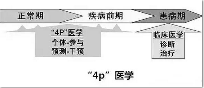 2000年,LeeHood提出了“4P医学”理念,它是“预防医学”、“预测医学”、“个体医学”、“参与医学”的英文首字母缩写。