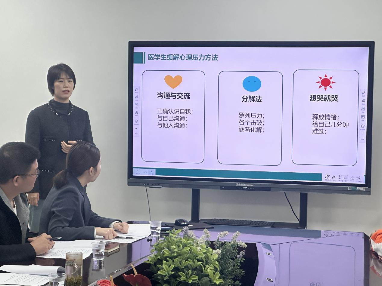 会上,张真珍以“滚烫的人生从心理健康开始”为主题进行了分享。心理健康部学生干部围绕班级心理健康状况以及日常工作中遇到的问题,对班级心理工作的流程和内容进行了深入讲解。并提出了许多切实可行的建议。司渊结合自己的求学经历分享了处理常见心理压力的方法。