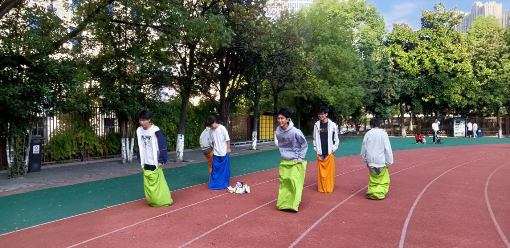 “袋鼠跳”游戏则让同学们在欢快的跳跃中体验到了团队合作的乐趣,学生们穿上特制的袋鼠袋,以接力赛的形式进行跳跃比赛。在这个过程中他们学会了如何相互扶持、共同前进,增强了团队的凝聚力和向心力。