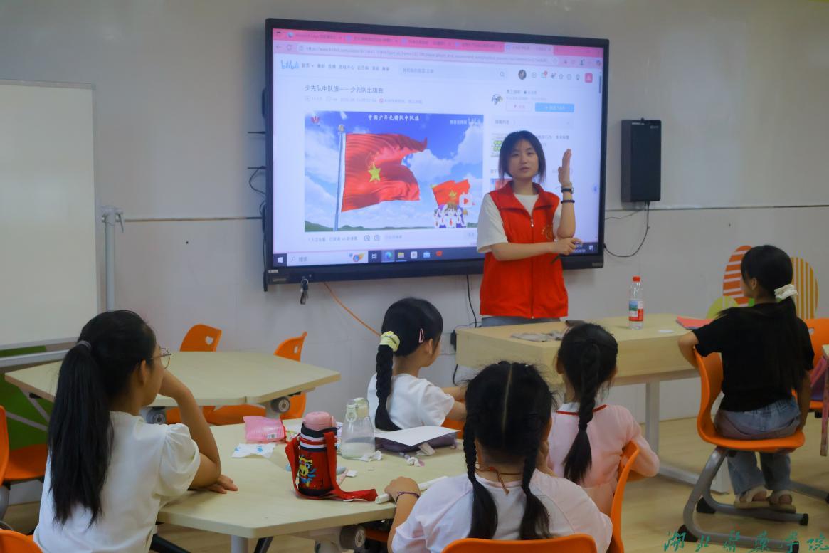 “红星闪闪放光彩,红星灿灿暖胸怀……”清澈嘹亮的童声在教室回荡,将活动推向高潮。音乐课上,实践队员精心挑选了朗朗上口的经典红色童谣。孩子们精神饱满,拍手跟唱,在铿锵有力的旋律和朗朗上口的歌词中,感受革命精神,汲取奋进力量。