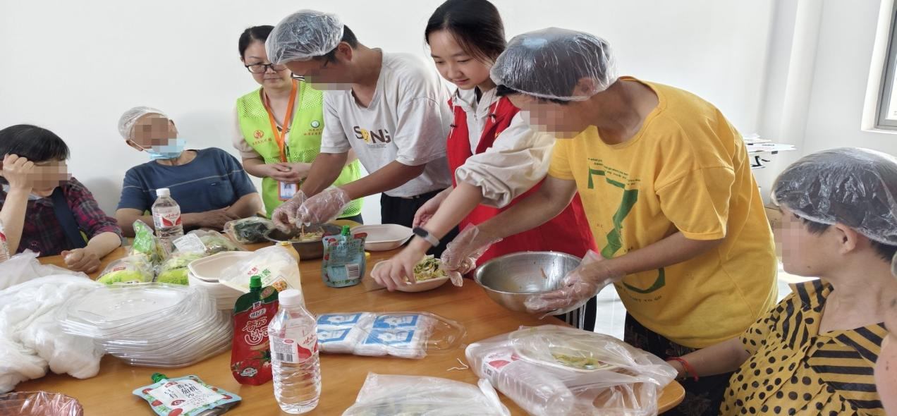 实践队在阳光社会服务中心精心组织了一系列康复支持活动。太极教学课堂上,队员们耐心指导,帮助参与者在一招一式中提升身体协调性,稳定情绪,感受传统文化的魅力。“美食工坊”里,队员们带领服务对象制作三明治、奶茶、汉堡、沙拉等美食,让他们在实践操作中锻炼生活技能,增强社交互动。此外,实践队还为服务对象及家属举办了夏季健康知识讲座,系统讲解季节性疾病预防、规律用药重要性及日常心理调适方法,提供了实用的健康管理指导。