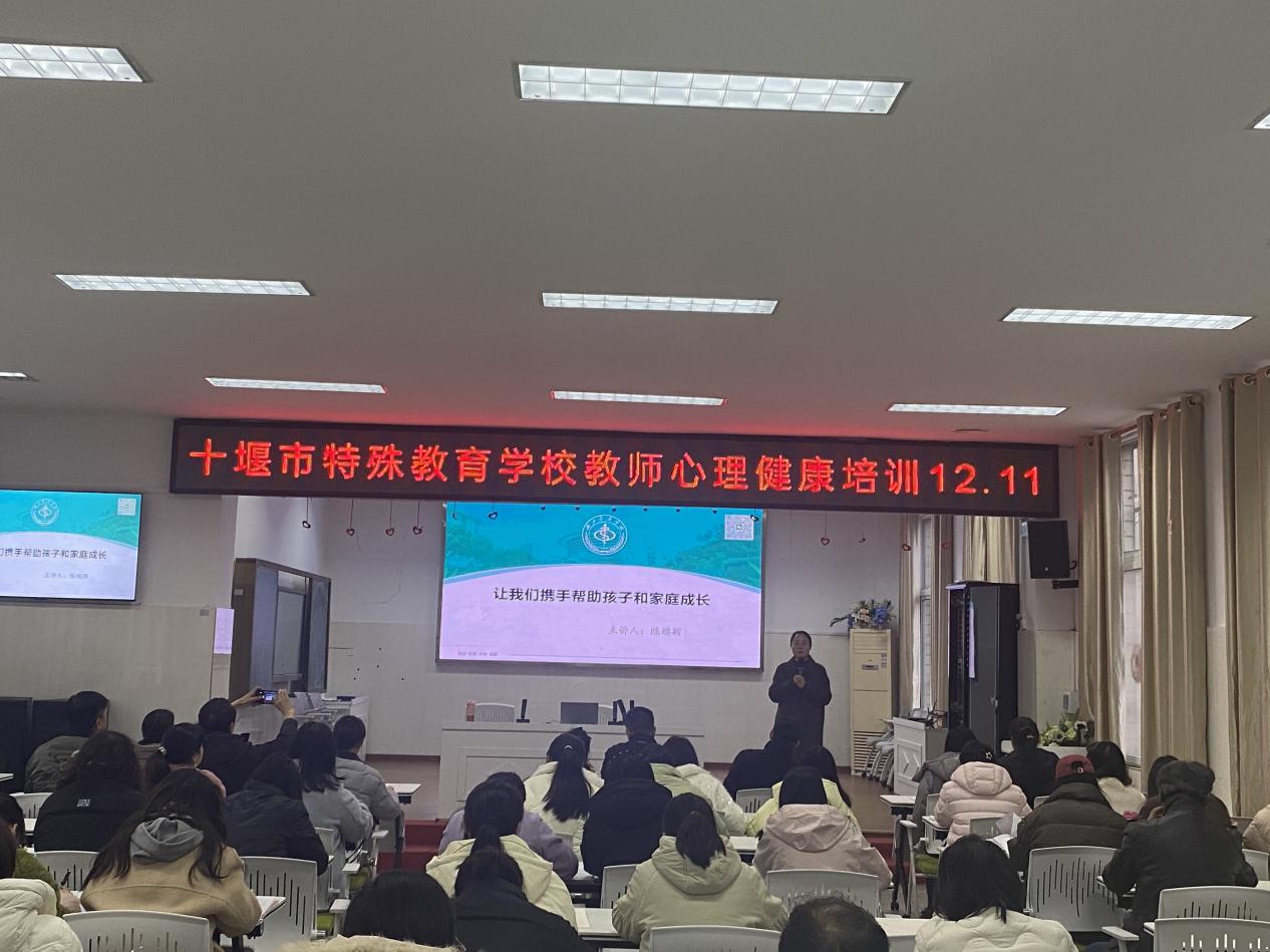 本网讯(通讯员 张秋月)12月11日,市校外未成年人心理健康辅导中心陈端颖副教授赴十堰市特殊教育学校,为全校教师开展讲座。