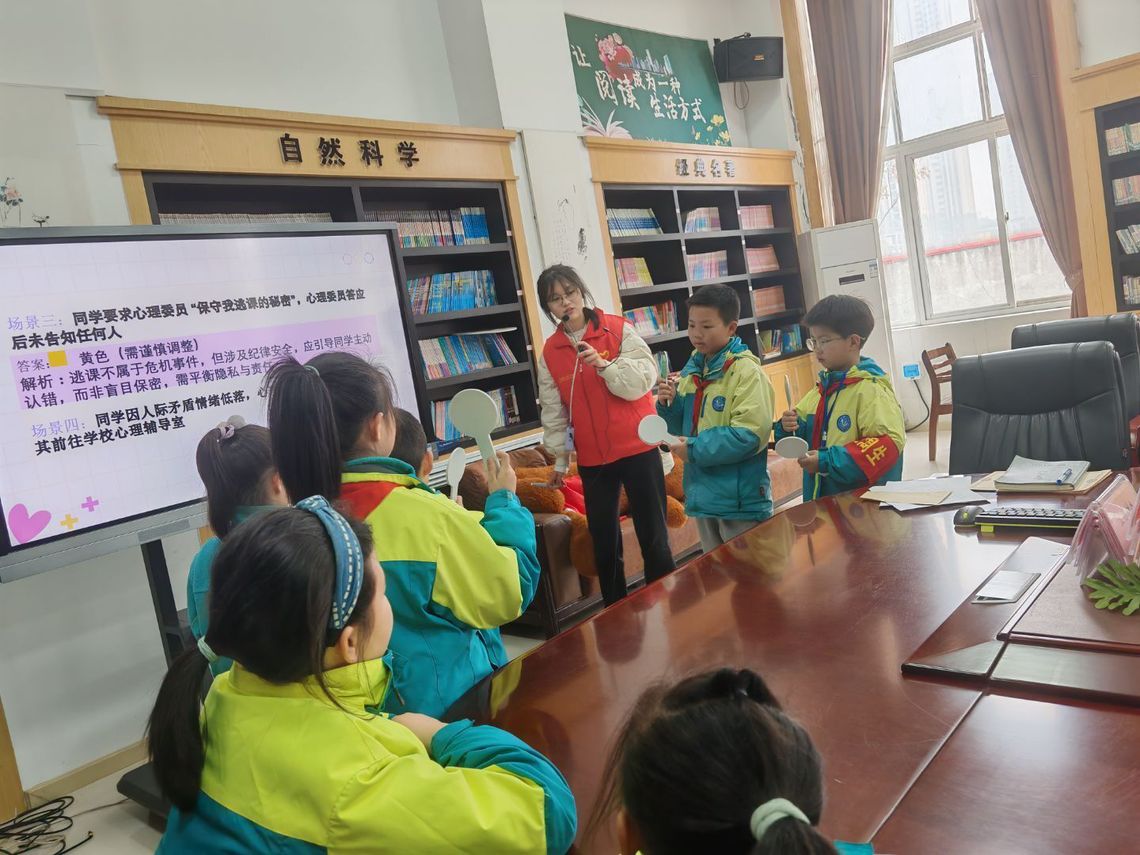 3月12日上午,志愿服务队走进十堰市东风54小学,开展“心灵小卫士集结令”心理健康科普活动。志愿者通过誓词宣读、“红绿灯大作战”情景模拟、情绪识别与倾听游戏等趣味形式,帮助各班级的小心理委员们明晰职责边界、掌握助人技巧,树立“温暖、专业、有边界”的支持理念,为小学搭建朋辈心理支持防线,以专业优势守护青少年心理健康。