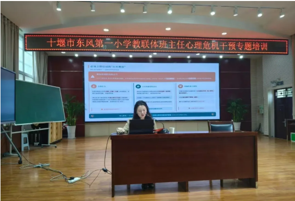为进一步提升教联体班主任的心理健康教育能力,筑牢校园心理健康防线,3月25日下午,十堰市东风第一小学教联体举行班主任心理危机干预专题培训。十堰市校外未成年人心理健康辅导中心郧阳中学分中心明媚老师作专题讲座。